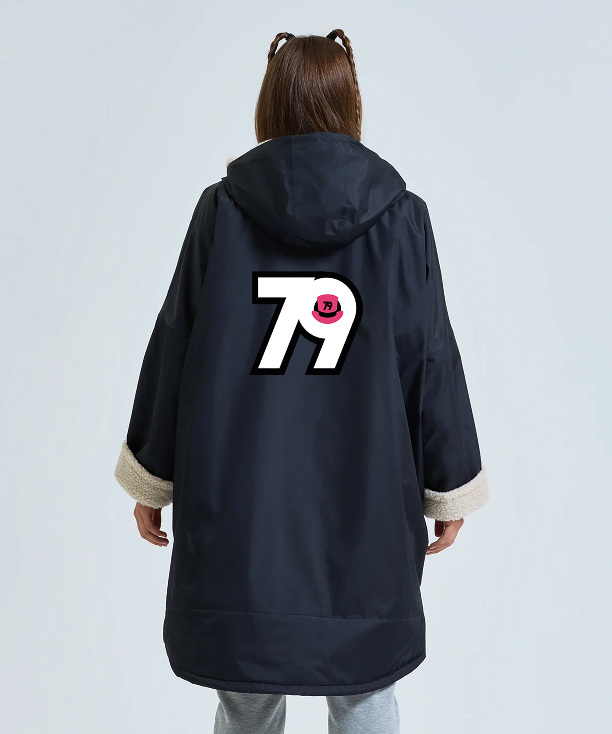 This robe features Storm Stacey branding on the front, keeping the look clean and premium, while the bold 79 logo on the back ensures unmistakable rider recognition from every angle.